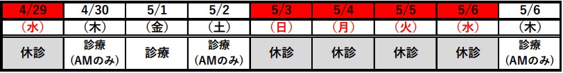 下記の通り休診とさせていただきます。ご了承のほどお願いいたします。